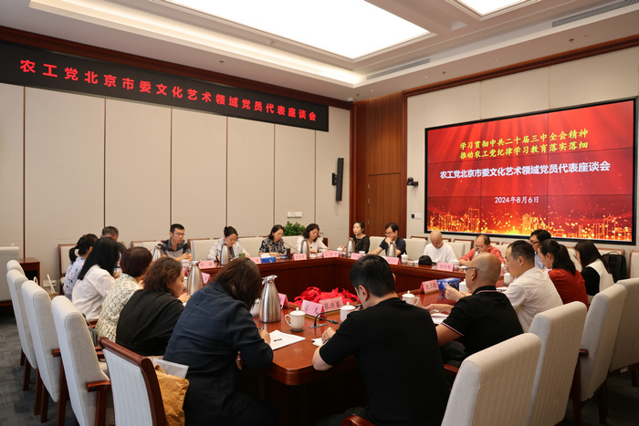文化艺术领域党员代表座谈会是落实农工党中央和北京市委会学习宣传贯彻中共二十届三中全会精神和纪律学习教育工作部署的重要举措,是农工党巩固拓展文化艺术阵地主题教育成果、提高思想政治工作实效的新探索。来自全市的文化艺术领域骨干党员代表及市委会组织处、宣传处相关同志参加会议。