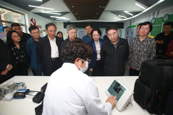 农工党中央与全国政协提案委一行首先来到青白口村村委会,听取了门头沟区、雁翅镇洪涝灾情介绍,了解农工党北京市委会倾力帮扶支持救灾情况,参观了农工党中央社会服务基地,调研农工党北京市委会整合资源向青白口村捐赠的远程医疗设备使用情况,并现场观看了远程医疗系统演示。