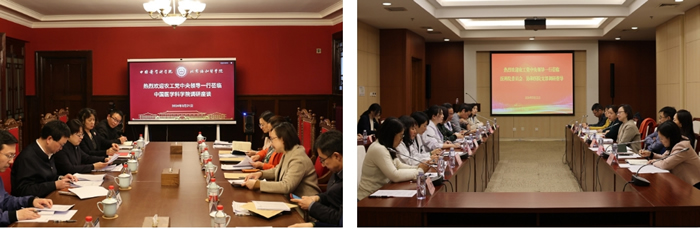 调研组在北京协和医院与农工党医科院委员会进行座谈,听取医科院委员会主委冯晓莉、协和医院支部主委杨爱明汇报委员会及支部基层组织建设、履职能力建设及代表人士队伍建设等工作。