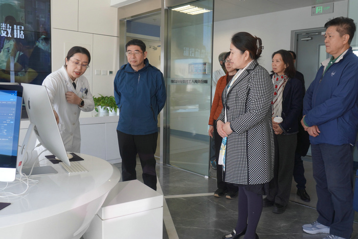 调研组在首都医科大学附属天坛医院了解其开展临床研究及科研成果转化应用情况。