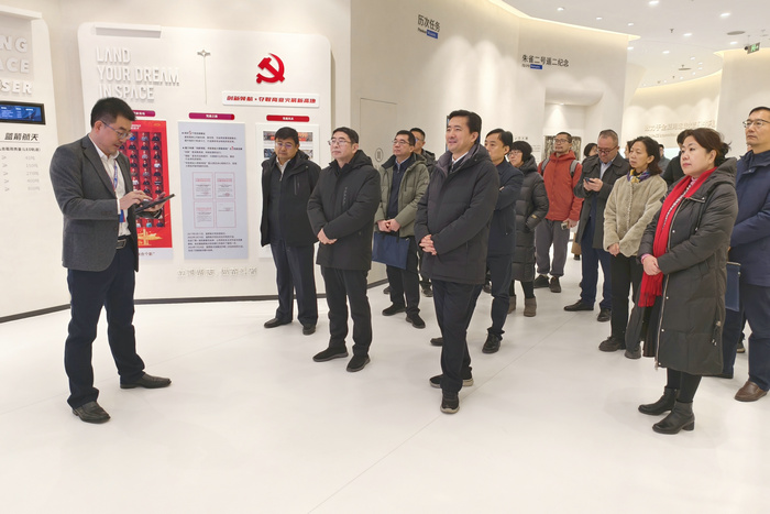 调研组在蓝箭航天空间科技股份有限公司参观朱雀、天鹊系列火箭等产品展示,并听取企业技术研发、生产制造、市场应用等方面的情况介绍。