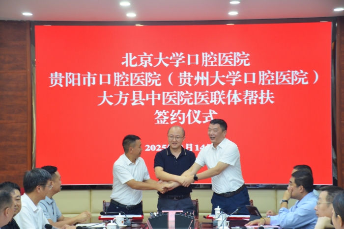 在市委会的联系协调下,北京大学口腔医院、贵阳市口腔医院与大方县中医医院签订医联体协议。
