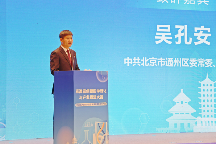 中共通州区委常委、副区长吴孔安在致辞中表示,城市副中心作为北京市医药健康产业布局中的重要一环,近年来深入贯彻实施创新驱动发展战略,促进创新链、产业链、资金链、人才链深度融合,加快医学科技成果转化落地,加速形成医药健康新质生产力,以科技创新推动医产协同高质量发展。本次京津冀创新医学转化与产业促进大赛,为创新医疗项目和企业提供了更多展示舞台及转化空间,为医药健康产业发展培育新质生产力,将进一步完善医学科技成果转化的全流程服务体系,推动形成良好的成果转化生态,为医学科技创新注入新鲜血液。副中心将以开放的姿态、优惠的政策和优质的服务,与大家携手同心,共享发展红利、共创美好未来。