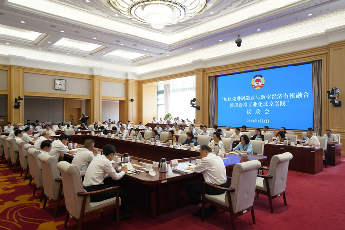 2024年6月3日下午,市政协和中共市委统战部联合召开议政会,围绕“加快先进制造业与数字经济有机融合,推进新型工业化北京实践”协商议政。市委书记尹力出席会议并讲话,市政协主席魏小东主持。市政协副主席、农工党北京市委主委王金南出席会议。