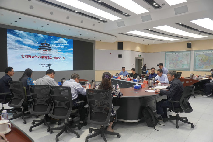 调研组听取了市生态环境监测中心关于北京市生态环境监测网络建设及管理支撑工作情况的介绍,详细了解北京市空气质量监测精准调度指挥平台在精准治污和重大活动空气质量保障等工作的应用情况,与市生态环境局负责同志共同回顾北京市空气质量改善历程,总结在能源、产业、交通等领域的生态治理经验,并围绕主要污染物排放量的变化趋势、北京空气质量持续改善面临的主要问题和瓶颈,交流了对北京市空气质量改善新战略目标、进一步优化能源结构特别是清洁能源机动车占比等的观点。