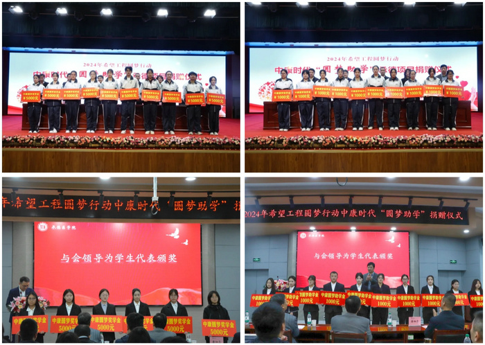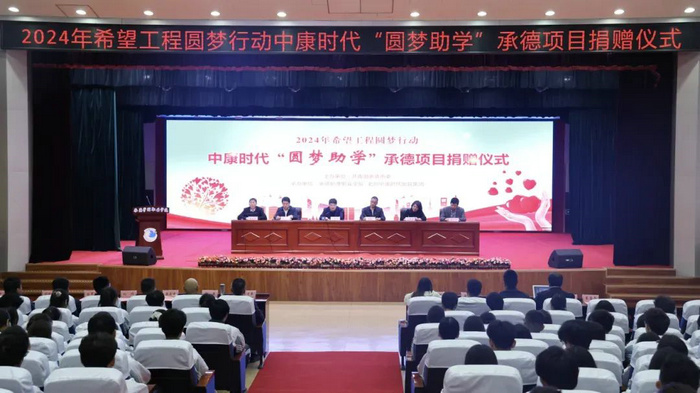 捐赠仪式上,北京中康时代医院集团向承德医学院和承德护理学院200名困难大学生每人发放助学金1000元,向品学兼优的20名大学生发放奖学金每人5000元,并赠送220本励志书籍。承德医学院和护理职业学院分别向北京中康时代集团赠送锦旗和证书。受助大学生分别分享获赠感言。