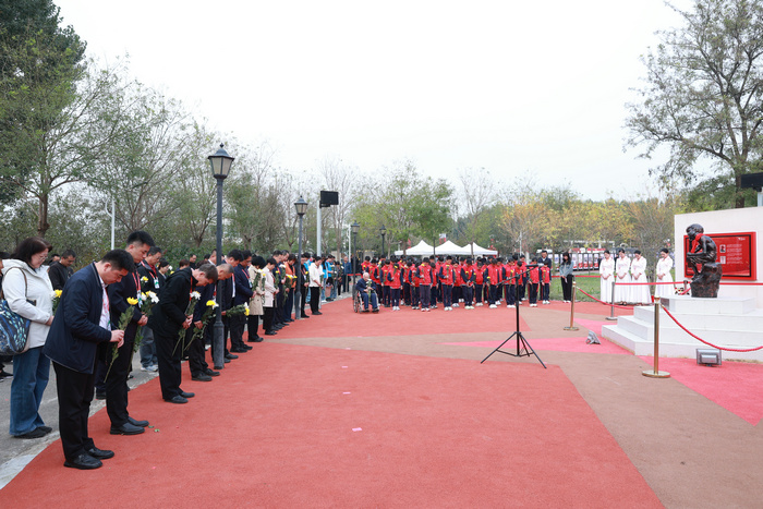 揭幕仪式上,中共北臧村镇党委书记张华义、革命烈士“小萝卜头”(宋振中)的哥哥宋振镛为雕塑揭幕。少年儿童们以献词的形式,向革命先烈表达了深切的敬意和怀念。随着纪念号角的响起,全体人员向为国家解放和建设事业英勇献身的烈士们默哀,致以崇高的敬意和缅怀。