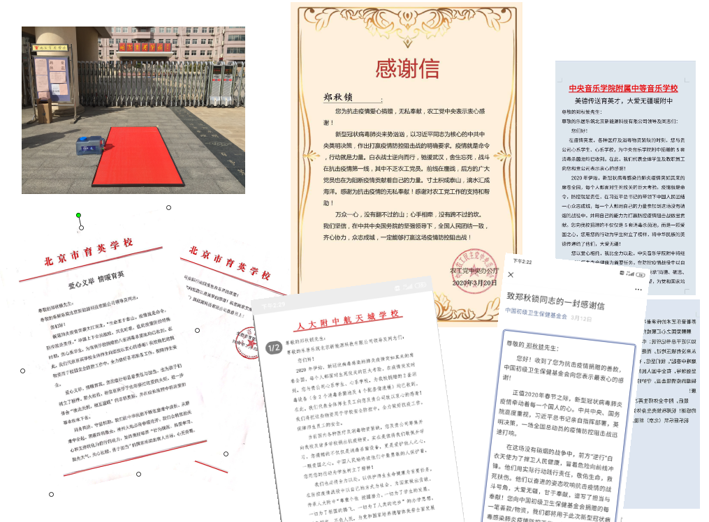 近日,郑秋锁企业无偿将20余套产品捐赠给清华第一附属医院、中央音乐学院附属中等音乐学校、北京市育英学校、人民大学附属小学、时代风帆办公楼等单位使用。产品实用性强,使用效果良好,解决了复工复学过程中人流密集的公共场所鞋底消毒问题。