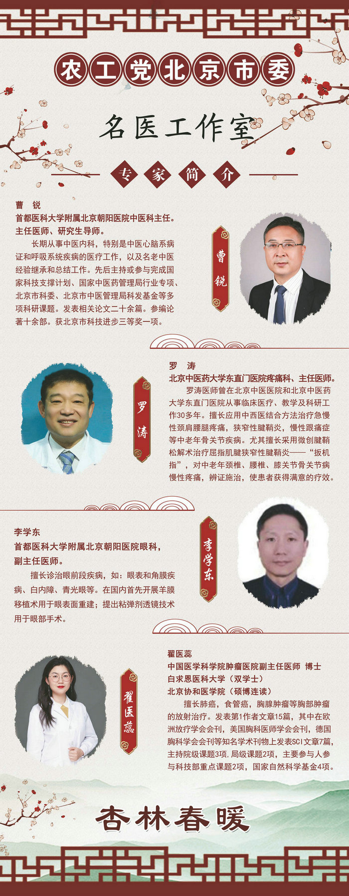 与此同时,首都医科大学附属北京朝阳医院中医科主任曹锐、北京中医药大学东直门医院疼痛科主任医师罗涛、首都医科大学附属北京朝阳医院眼科副主任医师李学东、中国医学科学院肿瘤医院副主任医师翟医蕊等4位三甲医院的农工党医疗专家为当地群众开展了义诊、健康咨询活动,并对村医进行了带教培训。