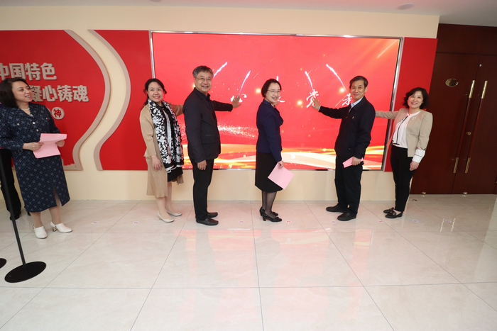 邓蓉玲宣布农工党京津冀三地书画作品联展开展,马延和代表农工党天津市委会致辞,江欣同有关领导同志共同启动农工党天津市委会思想政治工作宣教中心。