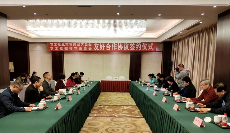 12月9日,西城区委与攀枝花市委一起举办了友好合作签约仪式。签约仪式前,北京市委、西城区委与攀枝花市委召开了座谈会。会上,西城区委与攀枝花市委交流了彼此开展民主监督、政治协商、参政议政、社会服务及自身建设等工作的情况,随后一同签订了友好合作协议。江欣对攀枝花市委统战部、农工党四川省委、攀枝花市委所做的工作表示感谢,并介绍了北京市委相关工作的情况,表达了继续开展学习交流和帮扶工作,共同助力健康中国、美丽中国建设的意愿。
