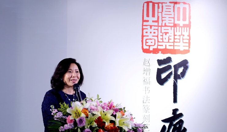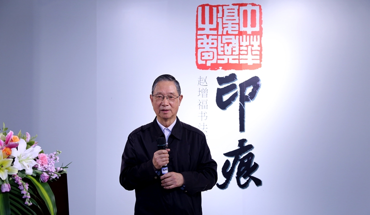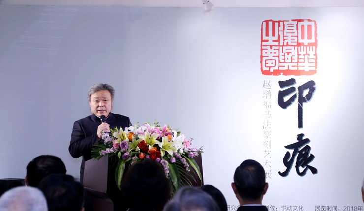 个人命运与时代息息相关,改革开放四十年也是赵增福从事篆刻艺术的四十年。改革开放带来了文化大繁荣,成就了众多优秀的文化工作者。作为历史的见证者与获益者,赵增福为此次艺术展选取了四百余方印蜕和四十多方的放大作品,希望通过以传统文化为载体,寄托对改革开放四十周年这一伟大历程的观察与记录、歌颂与祝福。开展仪式上,赵增福表达了激动与感激之情,学生代表赠送“铁笔柔情担道义,金石豪气上青天”的书法作品,向他表示祝贺。