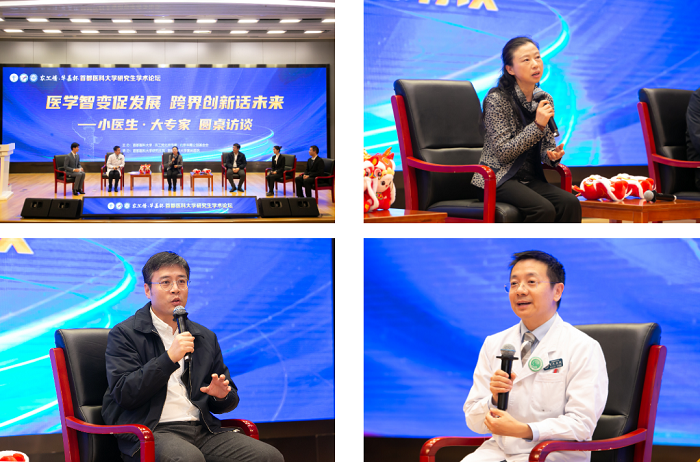 本届论坛特设小医生·大专家圆桌访谈环节。围绕“医学智变促发展 跨界创新话未来”主题,北京理工大学生命科学与技术学院副院长唐晓英、首都医科大学生物医学工程学院副院长李春林、首都医科大学宣武医院神经内科卒中抢救中心主任马青峰三位教授就“人工智能在医学领域的应用及未来发展趋势”“ChatGPT引爆人工智能时代医学生该如何正确应用”与研究生代表深入交流。