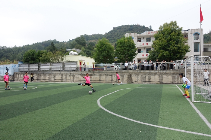 来到元宝小学时,孩子们正在上足球课