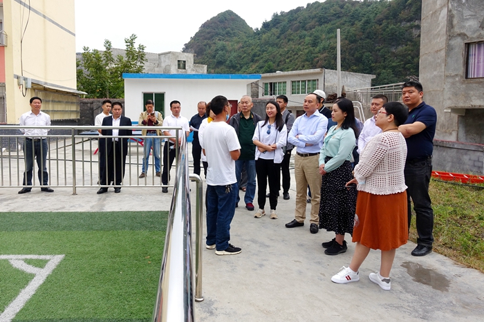 9月3日上午,调研组前往对江镇元宝小学,考察学校环境并与地方相关责任人现场办公,确定了由张汉龙捐资改造教学楼等事宜,并制定工程建设计划,新学校暂命名为“元宝同心小学”。现场还围绕进一步打造学校特色教育品牌等议题深入探讨。