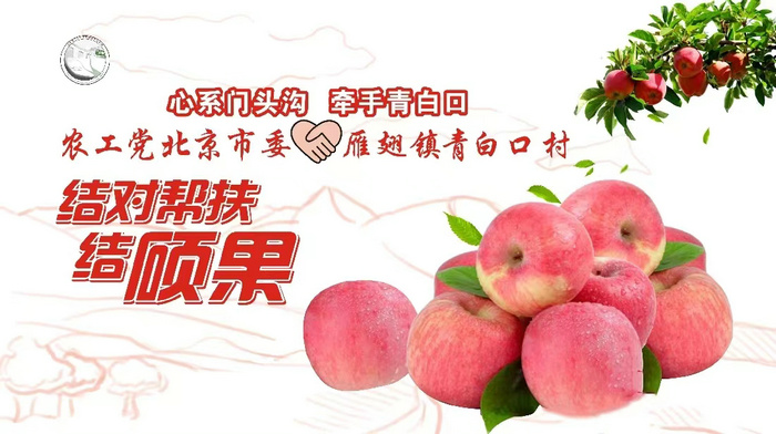 2018年,农工党北京市委与门头沟区雁翅镇青白口村签订了结对帮扶协议。这个地处京西燕山山脉深处的小村落居住着几百户以果树种植为业的村民。“酒好也怕巷子深”,为了开拓农产品销售市场,助力当地群众农特产品增产增收,农工党北京市委借助网站、微信公众号新媒体平台加大对当地农特产品的推广宣传,积极牵线在超市建立销售门头沟区农特产品的帮扶专柜,号召党员参与消费帮扶,连续多年帮助青白口村销售苹果千余箱,价值超过15万元。
