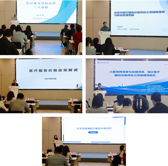 会议特别邀请国家医保局原副局长陈金甫作《医疗服务价格治理三大命题》报告。北京市医保局医药价格和招标采购处处长陈其伟作《北京市立项指南落地与耗材管理思路》报告。山东省医保局原一级调研员刘集平作《山东省医疗服务价格项目政策介绍》报告。河北省医保局原副局长李胜群分享《关于医疗保障体制下医疗服务价格管理的几点认识》。北京大学人民医院原物价科科长邓爱宏就北京市新增医疗服务价格项目政策进行解读。