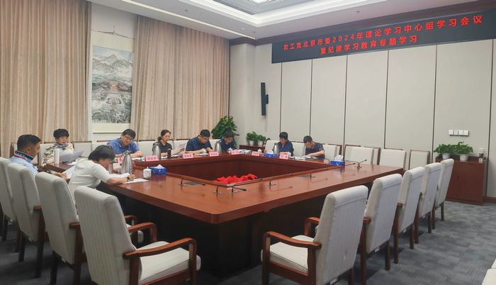 2024年6月19日下午,农工党北京市委召开理论学习中心组学习会议,专题开展纪律学习教育,深入学习习近平总书记在二十届中央纪委三次全会上的重要讲话精神,农工党纪律学习教育和以案促改整改落实工作等有关会议精神和《中国农工民主党纪律处分办法(试行)》《中国农工民主党内部监督条例》等。市委会主委、纪律学习教育领导小组组长王金南主持会议并领学。市委会专职副主委、纪律学习教育领导小组副组长江欣,市委会副主委、纪律学习教育领导小组成员荆志成、贺泓、邓旭亮、张金兰,市委会秘书长、纪律学习教育领导小组成员张琴琴参加学习。