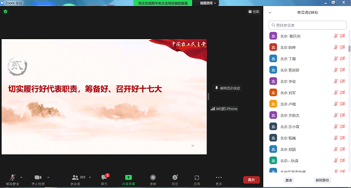 在京农工党十七大代表近70人在北京分会场或在线上参加了会议。