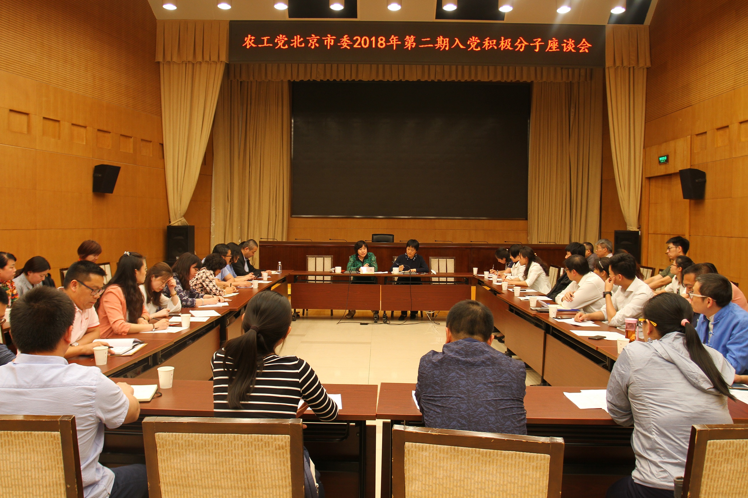 2018年5月9日,在党派楼一层多功能厅举办了农工党北京市委2018年第二期入党积极分子座谈会。市委会秘书长江欣参加会议并讲话,39名积极分子参加座谈。