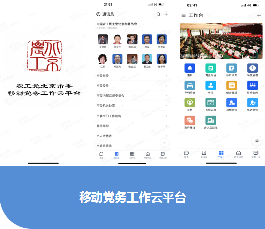 3.移动党务工作云平台。作为市委会机关办公综合平台,为各级组织和党员搭建起即时、安全的通讯平台,可实现统一信息展现、统一消息提醒、统一通讯录。同时建立了机关用章、经费审批、请假、办公审批等管理流程,搭建起顺畅衔接、高效智能的移动化办公机制,努力实现机关管理的智慧智能和服务党员的精细精准。