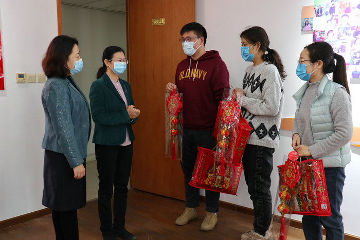 2021年2月9日,新春佳节来临前夕,农工党北京市委专职副主委李亚兰,市委秘书长、机关工会主席江欣带领工会给家在外地无法回家过年的单身职工送上亲切的慰问与真挚的祝福。