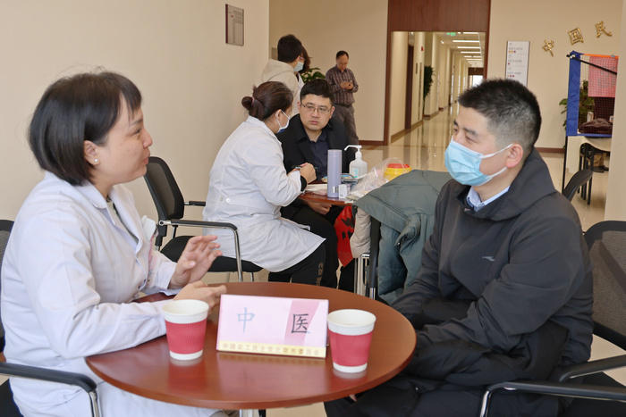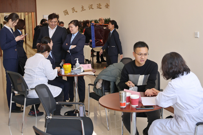 来自通州区工委的党员专家张秀娟、郑玲玲、孙静、刘蕊、张素勤等现场进行义诊,为副中心办公区干部职工中医把脉、看病查体,并耐心解答健康问题,指导自我健康管理。
