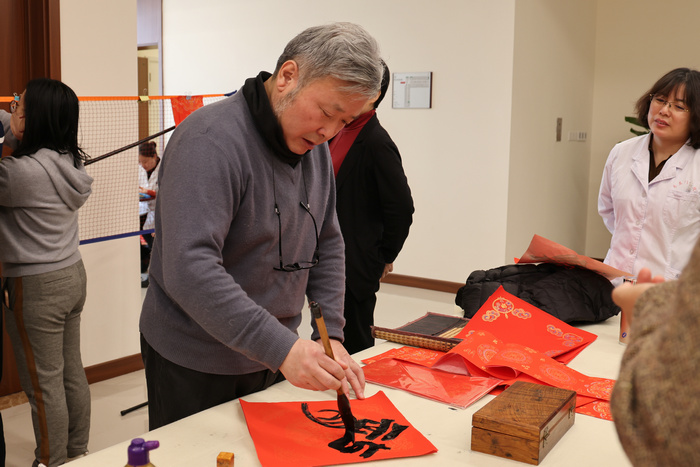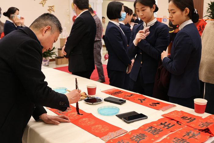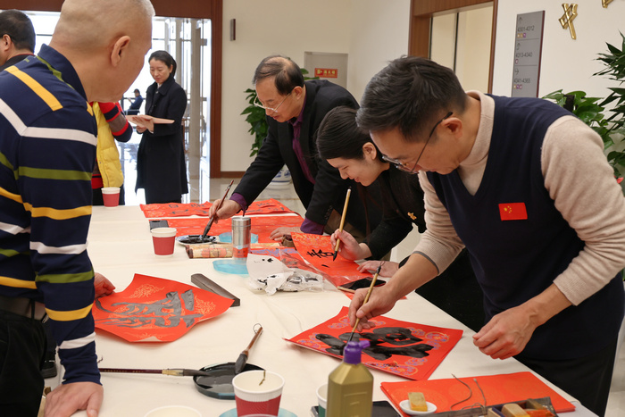 活动中,来自北京东方书画研究会的陈可之、赵增福、魏殿松、卞正林、王彦明、朱林、薛镛、张笛、张艺葳等书画家现场挥毫泼墨,为现场干部职工送上一幅幅福字和春联。