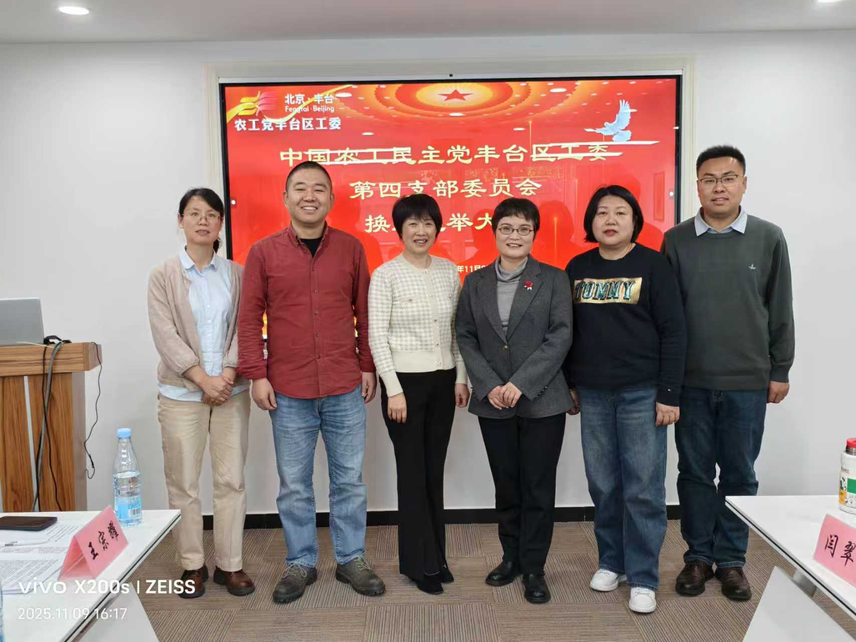 2025年11月9日,农工党丰台区工委第四支部召开党员大会,选举产生支部新一届委员会。农工党丰台区工委副主委李琼出席会议并讲话,会议由支部党员董培玲主持。