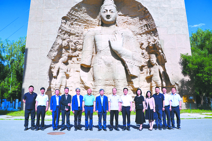 侯妙乐团队与山西文物局负责人在北京建筑大学的“云岗十八窟”前合影留念。受访者供图