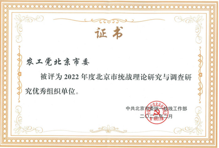 农工党北京市委理论研究工作获中共北京市委统战部表彰
