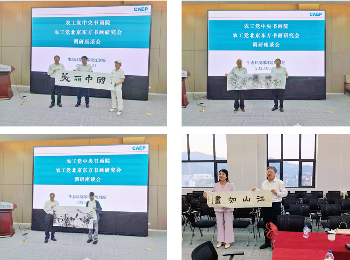 活动中,书画家一行与环规院专家围绕科学与艺术的有机结合等问题进行了深入交流,并现场挥笔创作了《美丽中国》《坡塘尽处见春山》《秋高》《江山如画》等艺术作品。